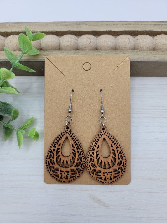 Wooden Decorative Tear Drop Earrings (options)